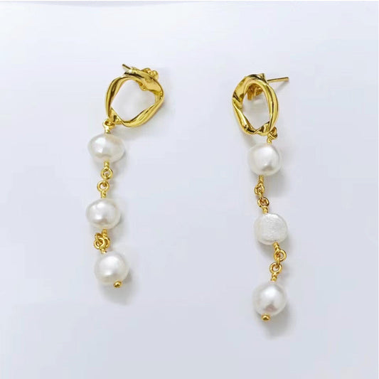Organically Shaped Circle & Baroque Treated Freshwater Cultured Pearls Drop Earrings gold real pearl 263263C01
